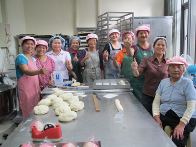 廖講師勝淼、林講師玉塀夫婦、李素端講師、陳素美講師與一群志工菩薩的發心,在每次彌勒日或有大型活動前,製作五穀饅頭,提供義賣。由於堅持品質,做出來的產品,如饅頭、包子等,經常供不應求,加上傅姐美雲一流的銷售功力為烘焙部增添了不少收入。
